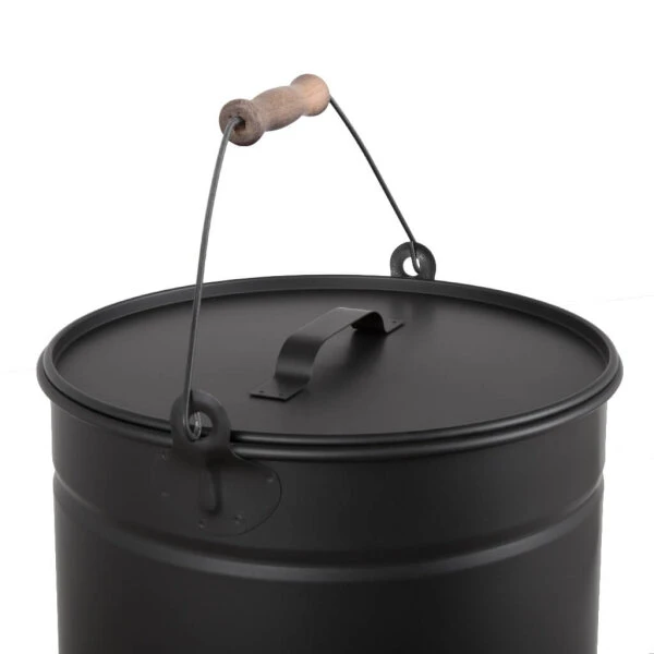 Der Eimer besteht aus robustem, hitzebeständigem Stahl mit einem Griff aus Holz. Mit diesem kann der Eimer leicht hin- und hergetragen werden. Der 25 Liter fassende Ascheeimer bietet ausreichend Platz für die Lagerung von Holzkohle, Holz, Briketts, Anzündern und Asche. Der im Lieferumfang enthaltene Deckel dient als Schutz vor Nässe und Feuchtigkeit. Seine dezente Optik macht ihn zum Allrounder – er passt sowohl zu klassischen Schwedenöfen als auch zu gusseisernen Kaminen.
