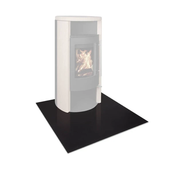 Eine klassisch rechteckige Stahlbodenplatte passt vor allem zu Kaminöfen, welche an einer Wand stehen. Beim Kauf sollten Sie jedoch auf die ausreichende Größe achten, wobei als Maß die Gesamtlänge von der Ofenrückwand bis zur geöffneten Tür zuzüglich 10 bis 15 cm empfehlenswert ist, damit z.B. heiße Glut beim Öffnen der Tür nicht auf den Untergrund fällt.