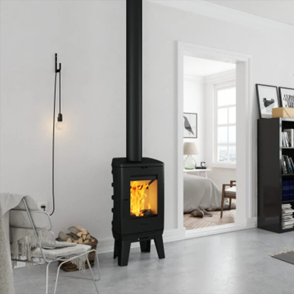 Der Kaminofen besitzt eine selbstschließende Brennraumtür und entspricht damit Bauart 1, was eine Grundvoraussetzung für die Mehrfachbelegung am Schornstein ist. Damit ist der Gussofen Dovre Brut 200 ideal für Mehrfamilienhäuser.