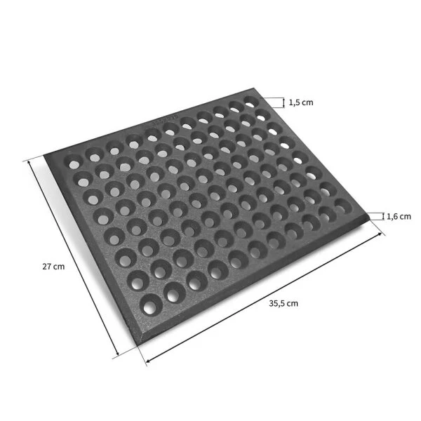 Aufgrund des Gussverfahrens kann es bei den Maßen zu Abweichungen von +/- 3 mm kommen. Guss hält auch bei langandauernder und starker Beanspruchung hohe Temperaturen aus. Damit sind Gussroste nahezu unverwüstlich.