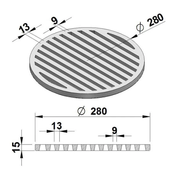Da Guss gegossen wird, kommt es bei den Maßen zu Abweichungen von +/- 3 mm. Guss hält auch bei langandauernder und starker Beanspruchung hohe Temperaturen aus. Damit sind Gussroste nahezu unverwüstlich.