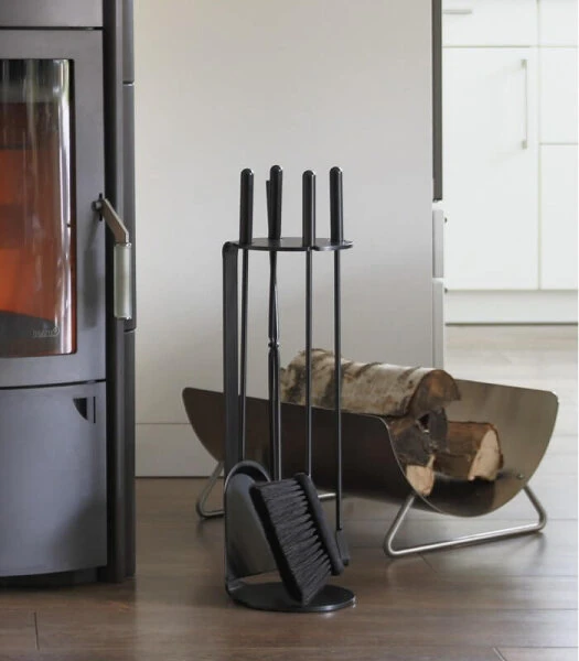 Mit dem eleganten Schürhaken können Sie mühelos Asche und Verbrennungsreste entfernen und somit für einen effizienten Abbrand sorgen. Bei größeren Resten ist die Schaufel griffbereit. Wenn Sie etwas Holz nachlegen wollen oder die Position der Holzscheite korrigieren müssen, ist die Zange Ihr sicheres Werkzeug, um Verbrennungen zu vermeiden. Ist das Feuer heruntergebrannt, wird der leere Brennraum mit dem Besen aus echtem Rosshaar im Handumdrehen staubfrei.