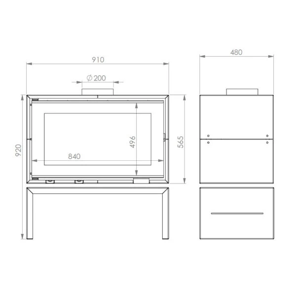 Das Untergestell des Kaminofen A.caminetti Panorama ist gleichzeitig ein Holzfach, indem Scheitholz aufbewahrt werden kann. Damit haben Sie stets genügend Feuerholz griffbereit. Bei den Modellen Panorama 75 und 90 misst es ca. 35 cm in der Höhe.