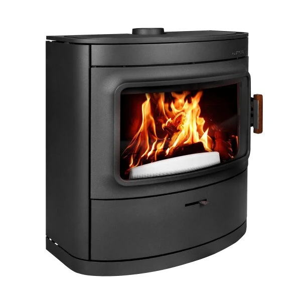 Mit seinen kompakten Maßen von 850 x 800 x 431 mm (HxBxT) fügt sich der Kaminofen Austroflamm Cody 2.0 auch in kleine Aufstellräume perfekt ein. Seine klaren Formen und der dunkle Korpus lenken den Fokus ganz auf die Flammen im Brennraum. Dank gebogener Sichtscheibe haben Sie auf diese auch den perfekten Blick.