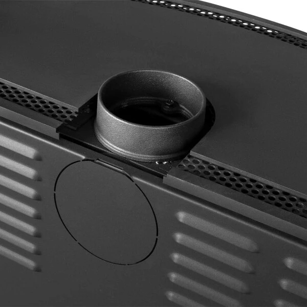 Der Kaminofen ist an der Hinterseite mit einem Zuluftanschluss ausgestattet und für eine raumluftunabhängige Betriebsweise geeignet. Dies bedeutet, dass die Verbrennungsluft nicht aus dem Wohnraum bezogen werden muss, sondern von außerhalb zugeführt werden kann. Das verhindert einen Sauerstoffverlust im Aufstellraum und macht zusätzliches Lüften größtenteils überflüssig.