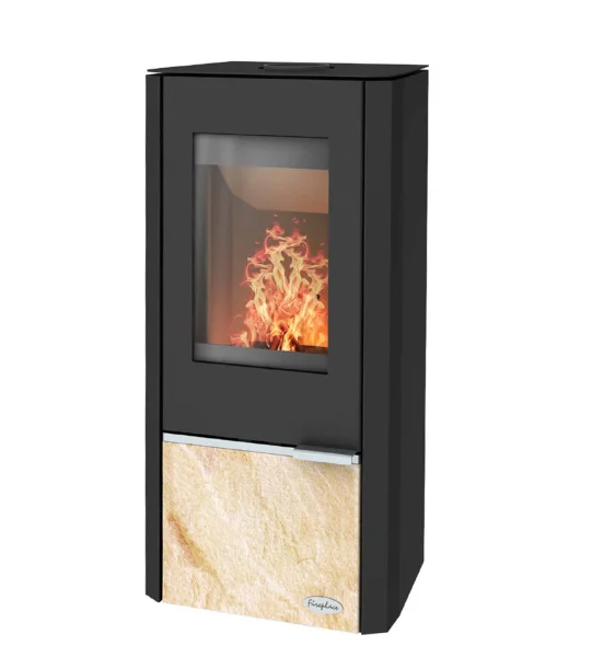 Die Blende im unteren Bereich des Kaminofen Fireplace Kingstone ist ein schickes Design-Element, welches in Sandstein oder Speckstein-Ausführung gewählt werden kann. Der Rest des Korpus ist aus mattem, schwarzem Stahl gefertigt, der für eine hervorragende Wärmeleitung sorgt. Der Rauchrohranschluss hat einen Durchmesser von 150 mm, das Rohr kann an der Ober- oder Hinterseite des Ofens angebracht werden. Einheizen können Sie Ihren neuen Kaminofen mit Scheitholz bis 33 cm Länge, so erhalten Sie wohlige Wärme in Ihrem Zuhause