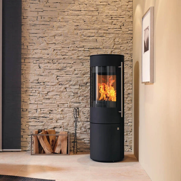 Das Unternehmen Olsberg existiert seit 1577 und setzt auf beste Qualität sowie innovative Verbrennungstechniken. Der Kaminofen Olsberg Tipas Plus Compact ist benannt nach einem erloschenen Vulkan in Argentinien. Doch im Gegensatz zu seinem Namensgeber versorgt der Tipas Plus Compact Sie und Ihre vier Wände mit wohliger Wärme. Der Tipas Plus Compact besitzt eine runde Grundfläche mit einem Durchmesser von 434 mm und passt somit in jede Ecke, oder auch als Blickfang mitten in den Raum. Wie der gleichnamige Vulkan, überragt der Olsberg Tipas Plus Compact mit einer Höhe von 1330 mm fast alles und wird zum Mittelpunkt Ihres Zimmers. Für den Kaminofen Olsberg Tipas Plus Compact sind mehrere Varianten der Verkleidung verfügbar. In der klassischen Ausführung ist er mit mattschwarzem Stahl verkleidet. Alternativ dazu kann er mit Keramik in der Färbung Caffe Freddo oder mit einer edlen Naturstein Serpentin Verkleidung bestellt werden. Die Vorderseite ist bei jeder Variante mit schwarzem Stahl verkleidet, was das Flammenspiel im Inneren der Brennkammer hervorhebt. Mit der Wahl der Verkleidung verändert sich auch das Gewicht des edlen Kaminofens. In der Stahlverkleidung bringt er 138 kg auf die Waage, bei den beiden anderen Ausführungen dagegen 150 kg.