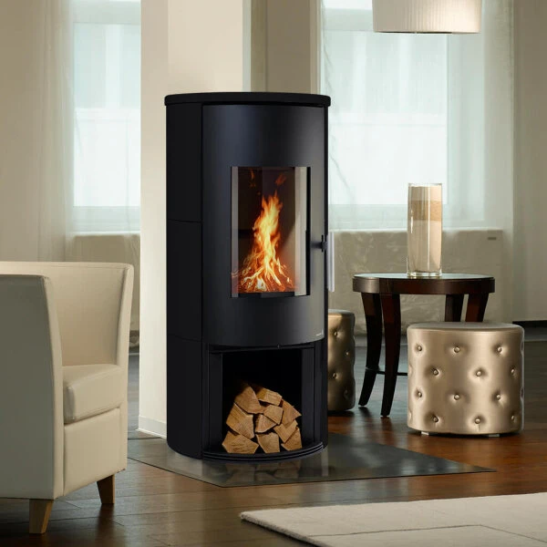 Schlank, hoch und nahezu kreisrund im Querschnitt setzt der Vitus einen stilsicheren Akzent in jedem Aufstellraum. Seiner gebogenen äußeren Form folgt auch die schwarze Feuerraumtüre mit der hohen, 430 x 280 mm großen Sichtscheibe. Hierdurch wird dem Betrachter der Blick auf das Feuer im Inneren gleich aus verschiedenen Winkeln ermöglicht. So entsteht ein einzigartiger Eindruck, welcher für unvergessliche Momente und ein ganz besonderes Kaminerlebnis sorgen wird.