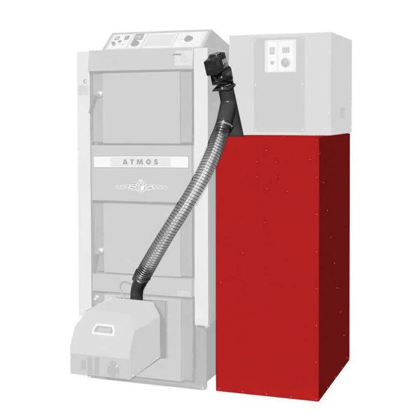 Der Atmos Pelletbehälter kann direkt neben dem Kessel aufgestellt werden. Die Förderschnecke ist speziell für eine steile Entnahme konstruiert und wird mitgeliefert. Dieses Silo benötigt eine Stellfläche von 48,5 cm x 70,0 cm (B x T) und passt somit in jeden Heizungskeller neben den Pelletkessel. Den Atmos Pelletbehälter erhalten Sie bei uns in drei verschiedenen Größen.