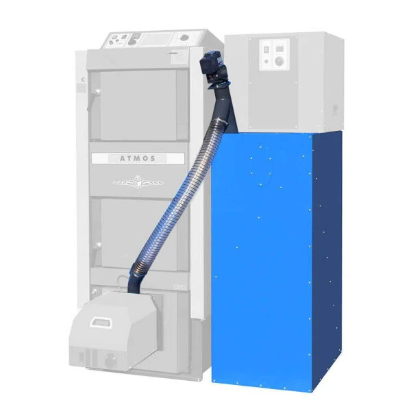 Praktischerweise können Sie diesen Pelletbehälter mit einem Atmos Pelletsauger nachrüsten. Sollten Sie die Möglichkeit haben, ein externes großes Pelletsilo zu stellen, oder ein Pelletlager selbst bauen, können Sie über den Atmos Pelletsauger den Behälter automatisch befüllen lassen.